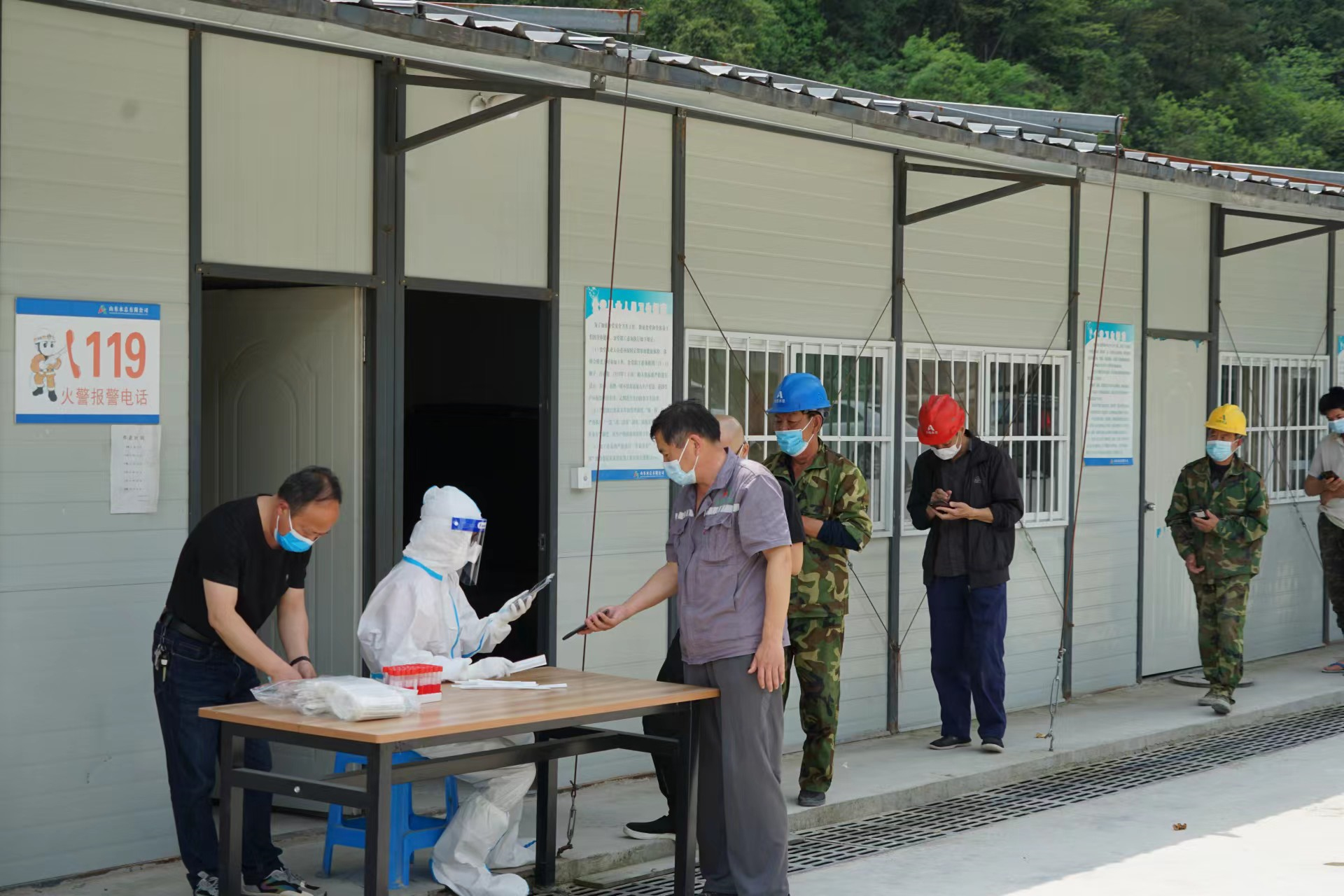 当前,全国疫情呈现反弹态势,疫情防控形势异常严峻。为有效管控疫情传播风险,落实疫情防控主体责任,4月12日,杭州鲁润米兰平台.米兰(中国)_米兰平台.米兰(中国)邀请项目驻地清凉峰镇卫生院医护人员,到双溪口水库项目部对全体参建人员进行核酸检测,确保应检尽检、全员覆盖,筑牢建筑工地疫情防控安全网。医护人员来工程现场核酸检测,不仅免去了项目人员到医院排队的不便,更大程度的节约了时间,避免影响正常施工。