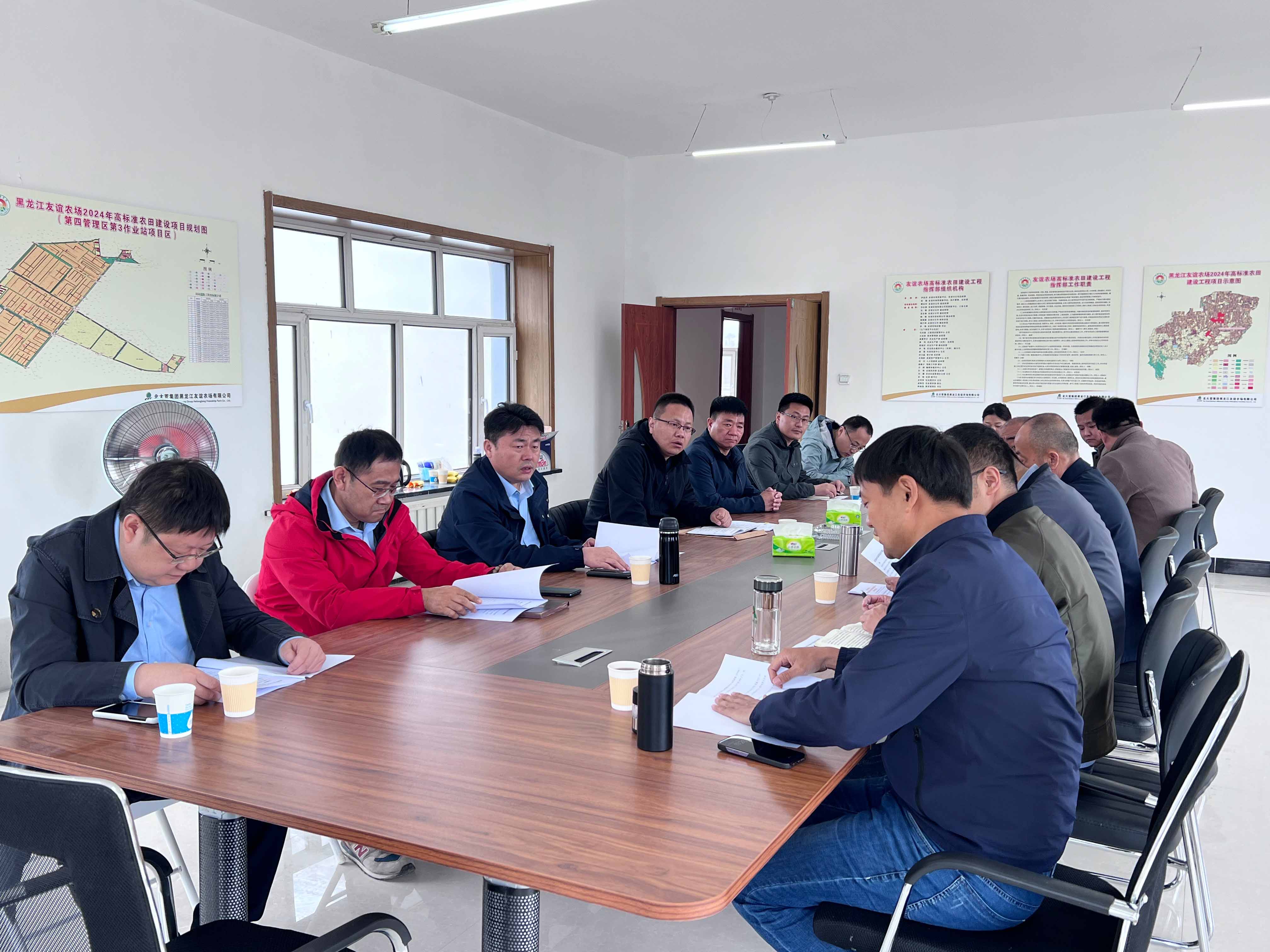裴文晶一行首先来到黑龙江省粮食产能提升项目了解项目进展,并同项目部一线人员进行交流。随后,调研组来到黑龙江友谊农场2024年高标准农田建设项目,同北大荒集团黑龙江友谊农场有限米兰平台.米兰(中国)_米兰平台.米兰(中国)副总经理樊庆华进行会谈。双方对当前项目的总体进度、面临的机遇和挑战进行了分析和研讨,并对下一步如何加强合作进行深入交流,展望两家省级国有企业合作的未来,努力发挥山东水总基础建设和北大荒集团农业生产运营的优势,打造出“1+1>2”的效果。