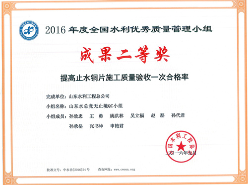 提高止水铜片施工质量验收一次合格率
