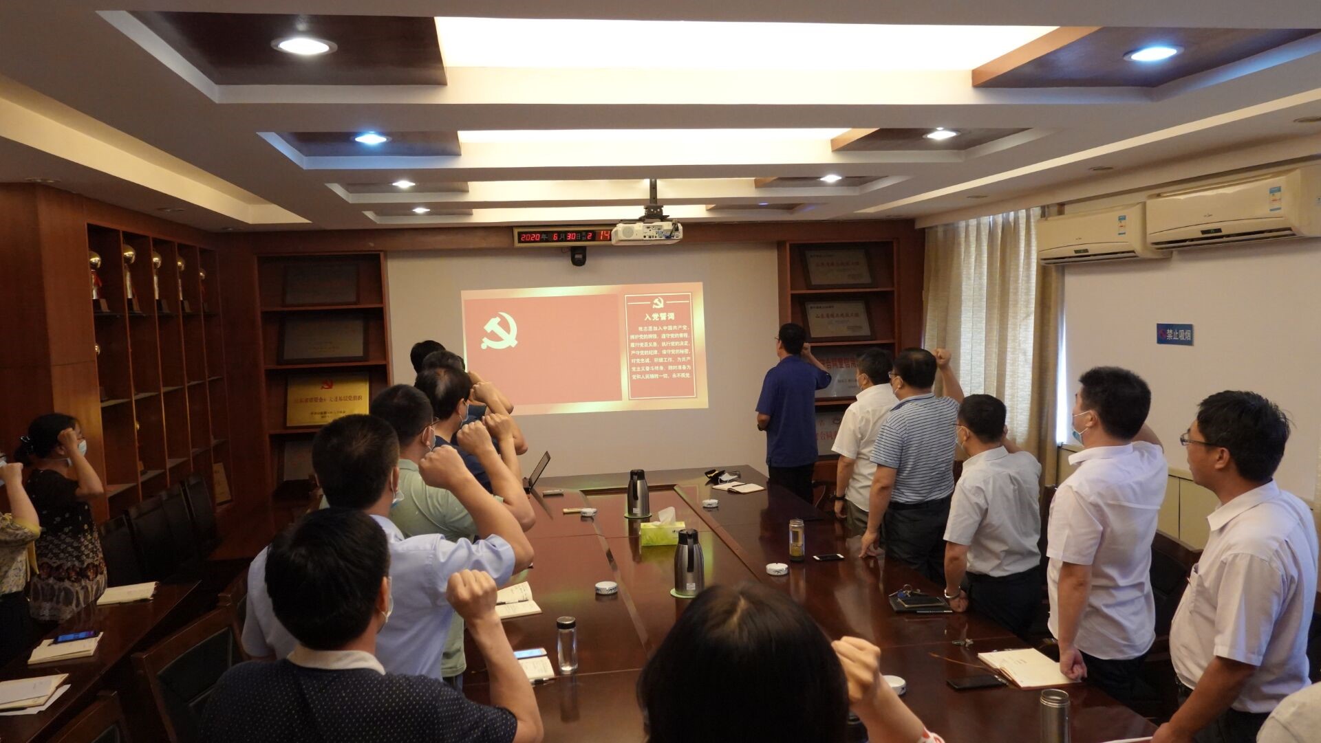 在“七一”来临之际,为纪念中国共产党成立99周年,回顾党的光辉历史,颂扬党的丰功伟绩,进一步加强党员的理想信念教育,米兰平台.米兰(中国)_米兰平台.米兰(中国)党委组织开展了重温入党誓词、观看红色电影的主题党日活动。
