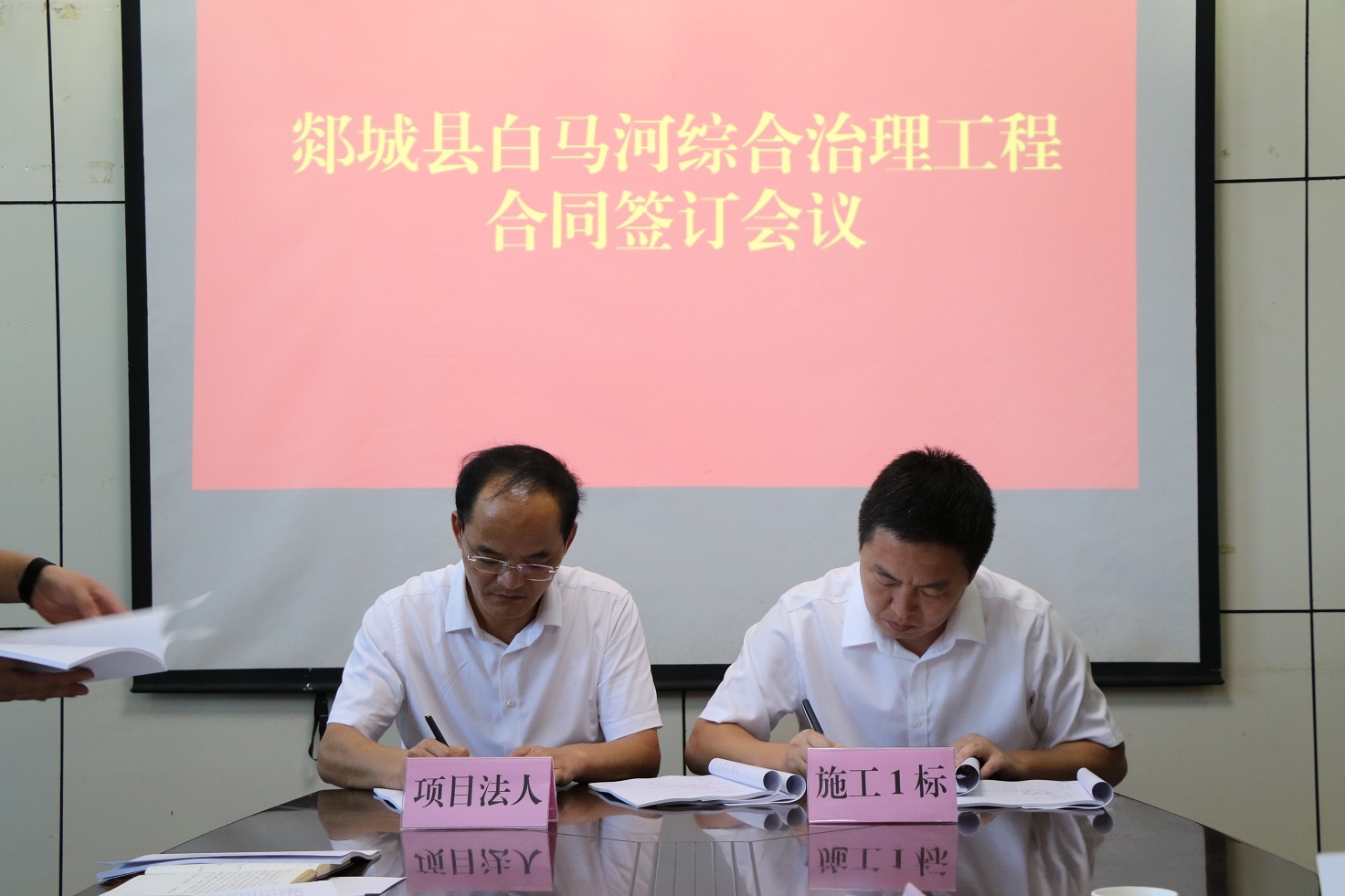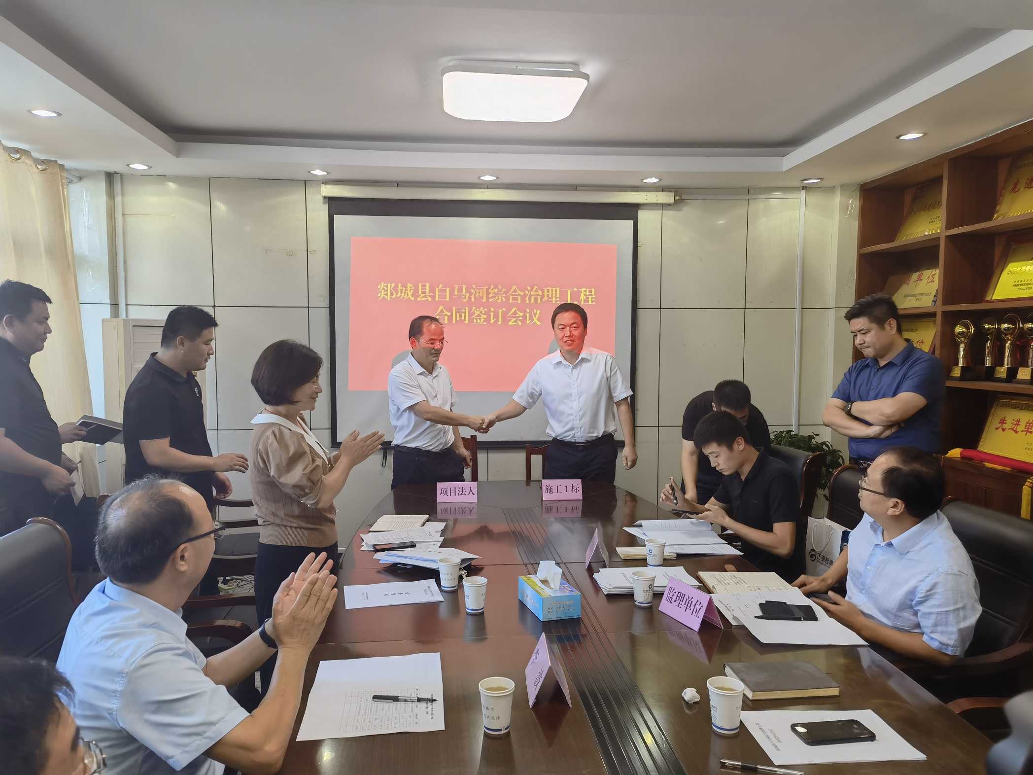 9月13日下午,郯城县白马河综合治理工程合同签约仪式在郯城县水利局举行。米兰平台.米兰(中国)_米兰平台.米兰(中国)党委副书记、董事、总经理靳文硕出席签约仪式,第三分米兰平台.米兰(中国)_米兰平台.米兰(中国)副总经理徐浩陪同。